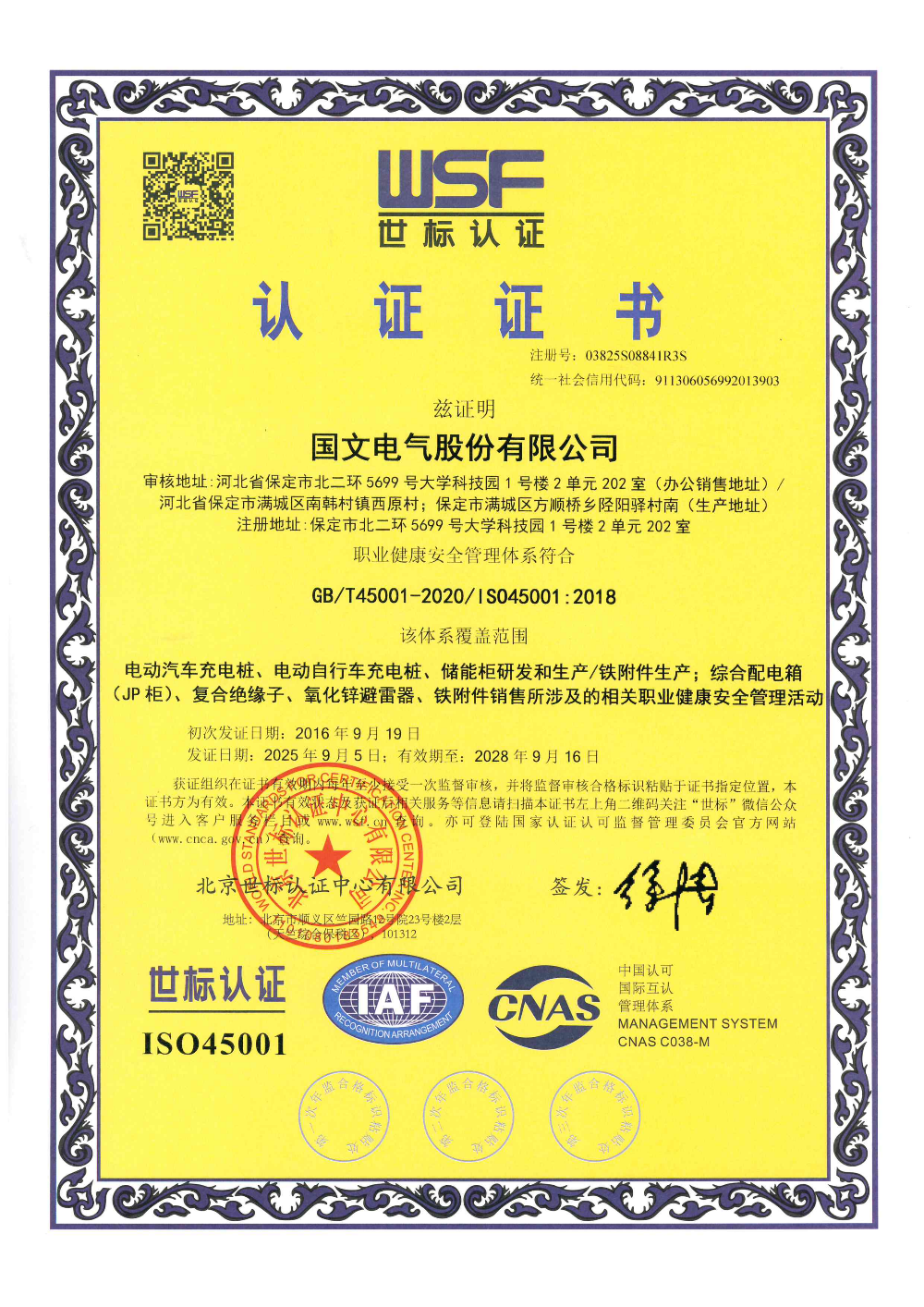 职业健康安 全管理体系证书...