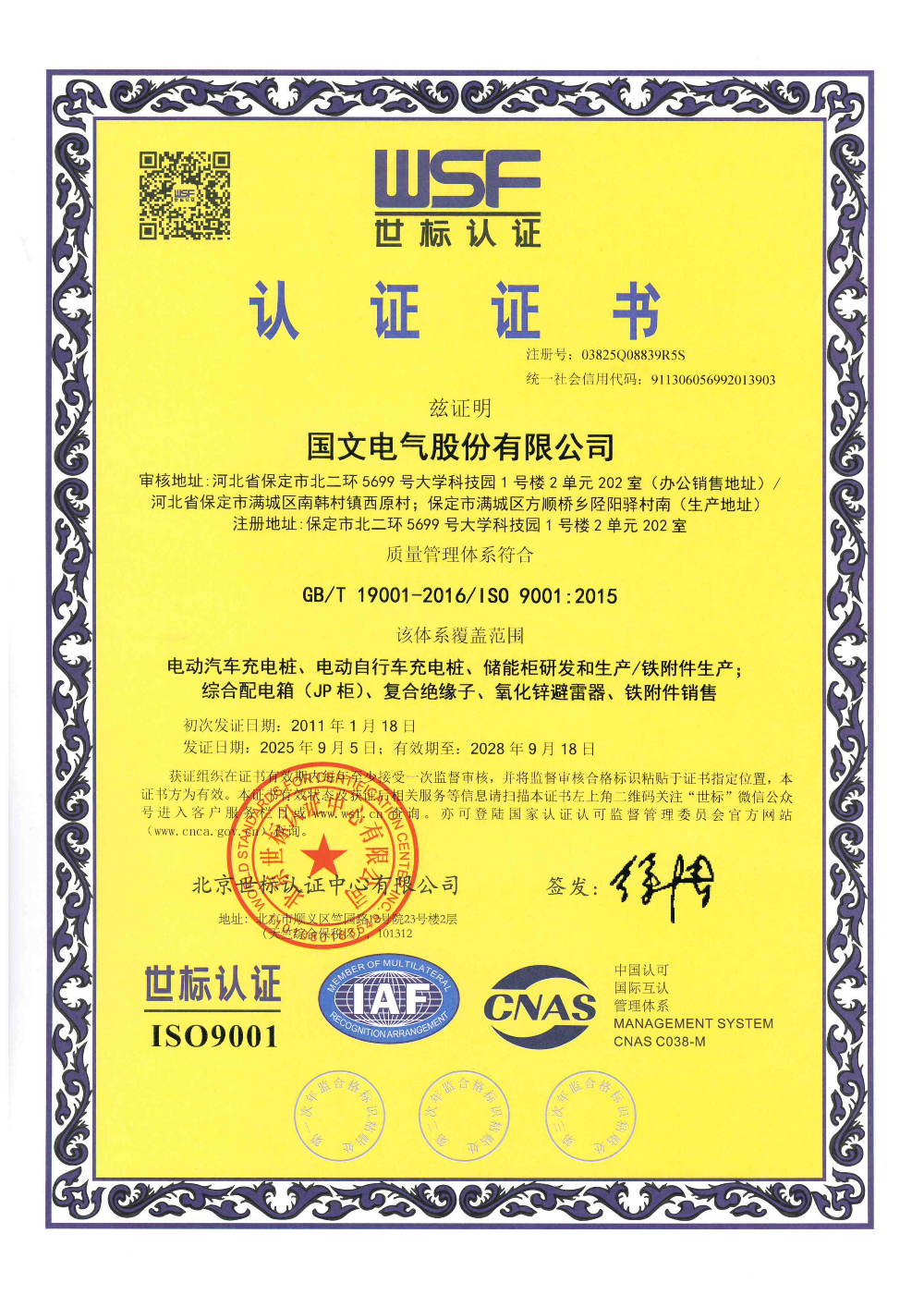 质量管理体系证书